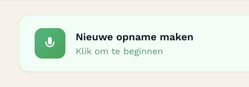 Na inloggen in Notizy Web kun je direct van start met het opnemen van een gesprek.