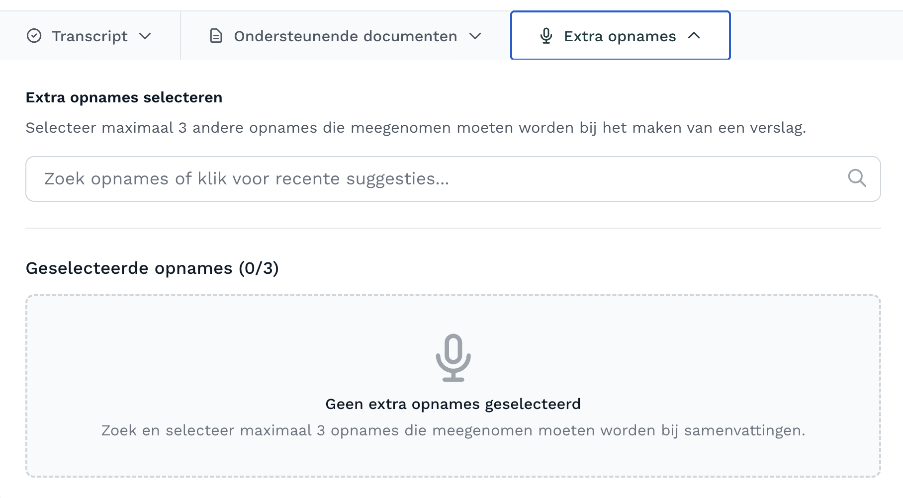3. Selecteer hier tot 3 extra opnames die je samen met de hoofdopname wil uitwerken tot één verslag