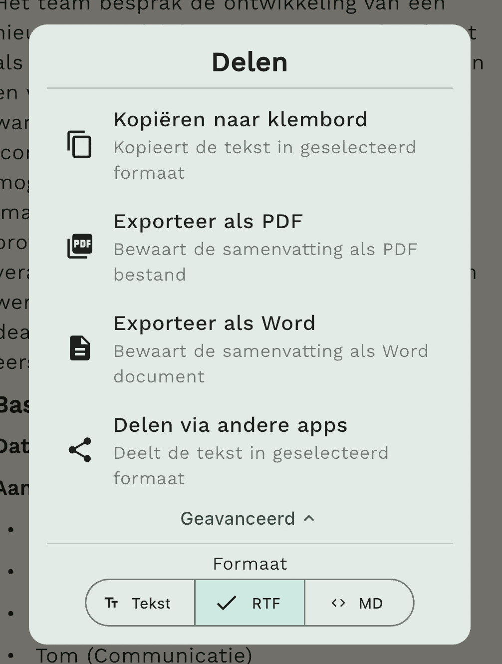 Exporteer als PDF of Word-bestand – netjes opgemaakt en klaar om te versturen