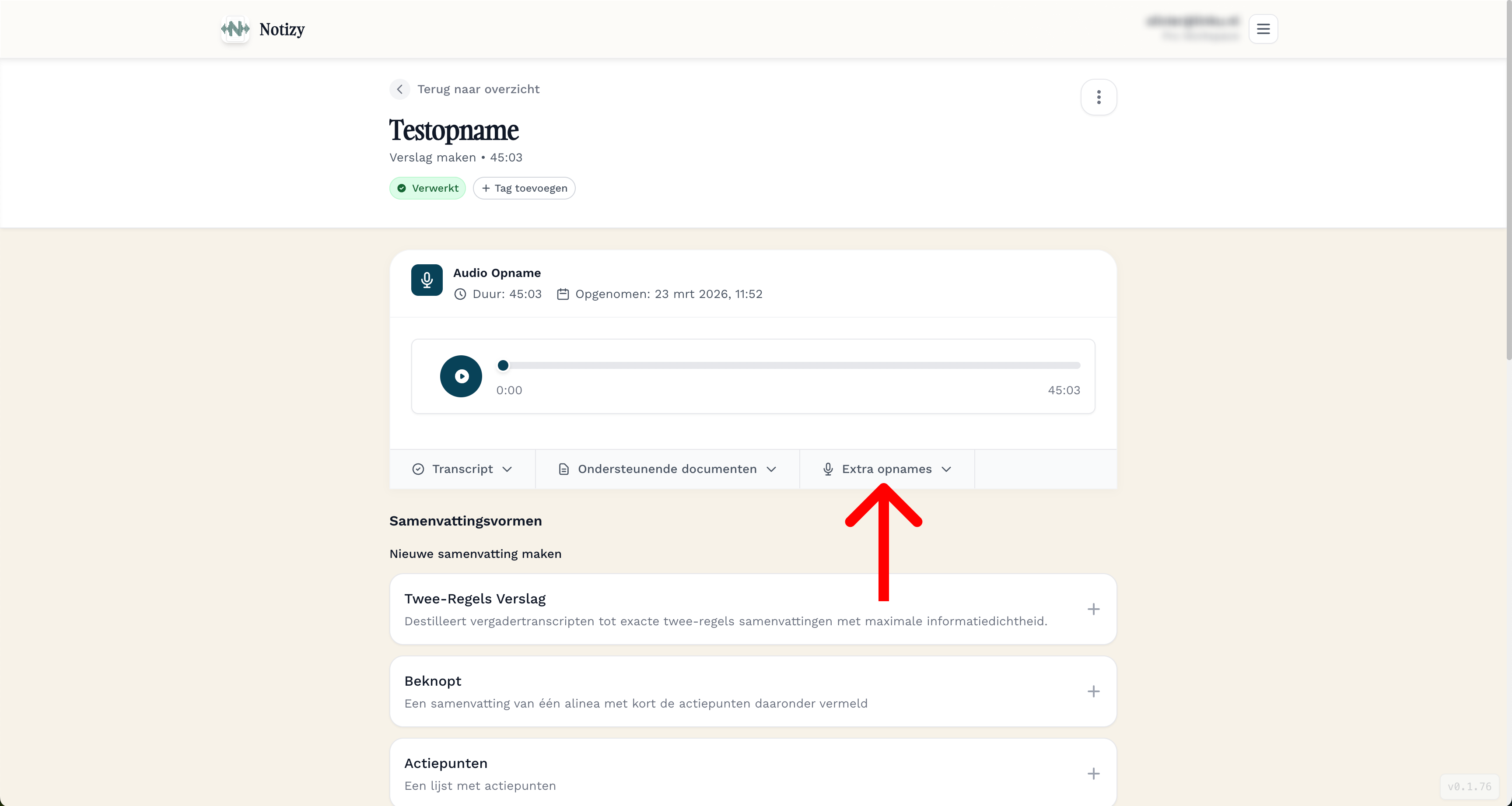 Open webversie van Notizy en kies de hoofdopname.