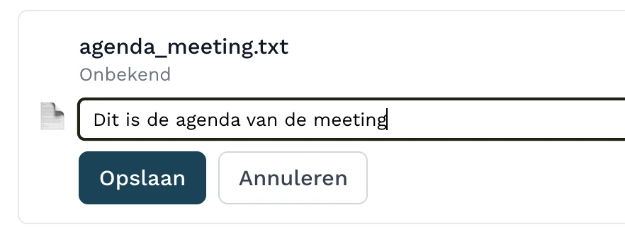 Hier kun je een agenda uploaden als bestand (bv. PDF, Doc) of handmatig plakken als tekst