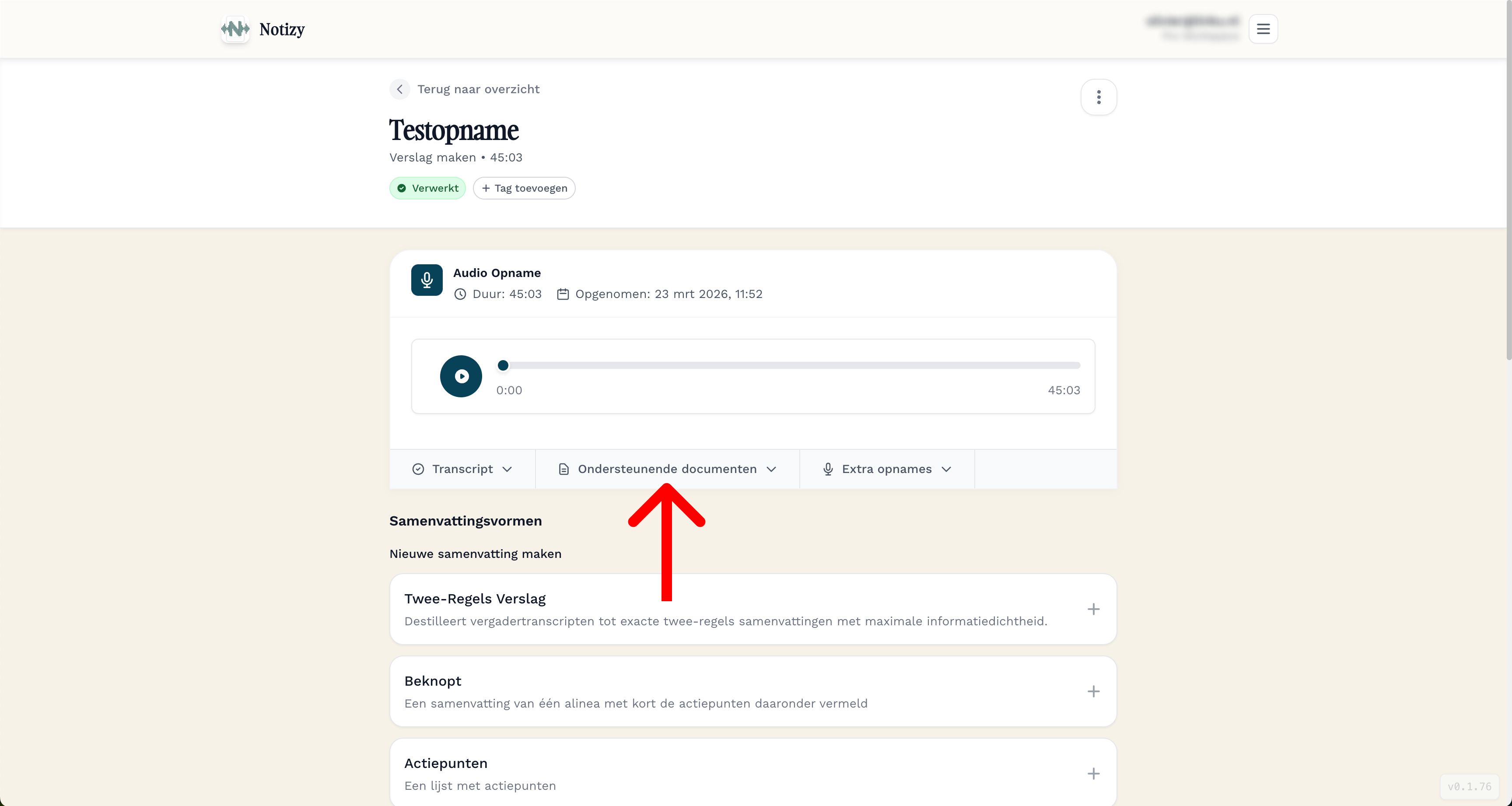 Open de opname in de webversie van Notizy