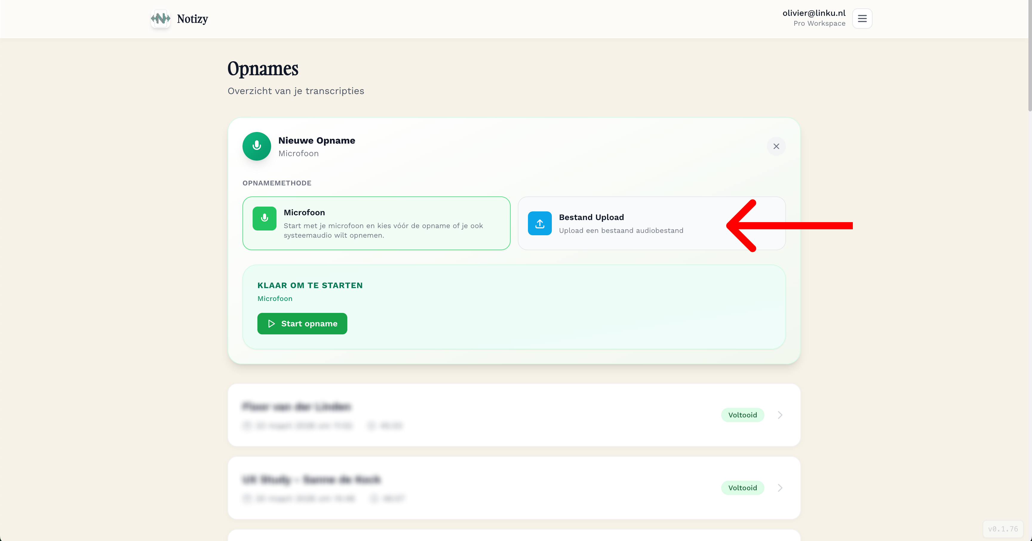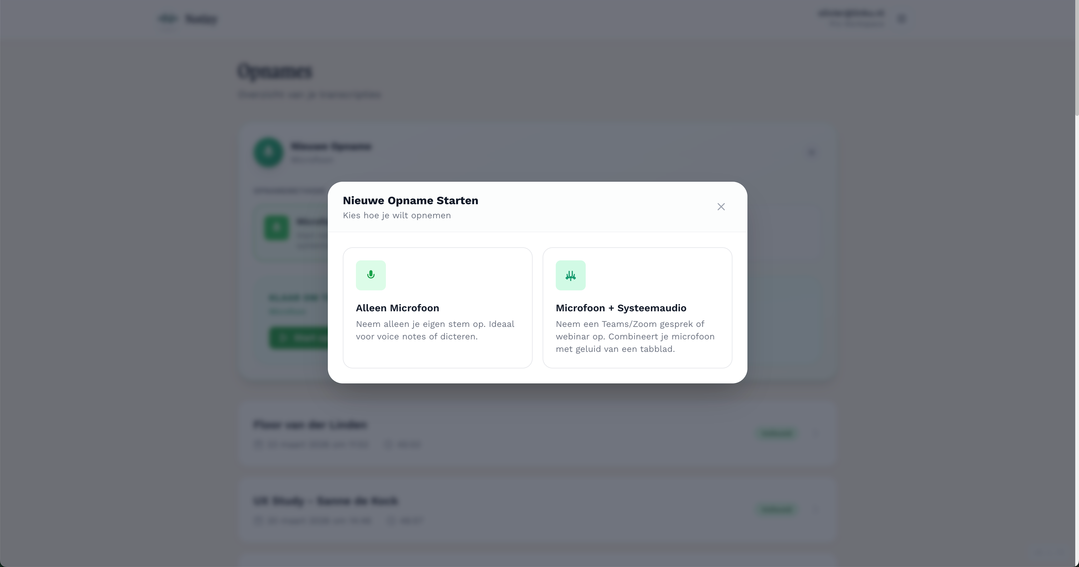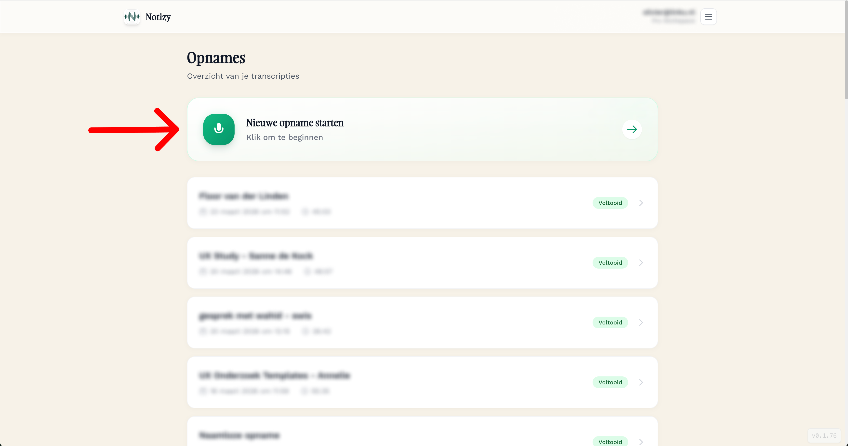 Wil je geen nieuwe opname maken, maar een eerder verslag terugzien of verder bewerken? In Notizy Web vind je al je eerdere opnames in het startscherm.