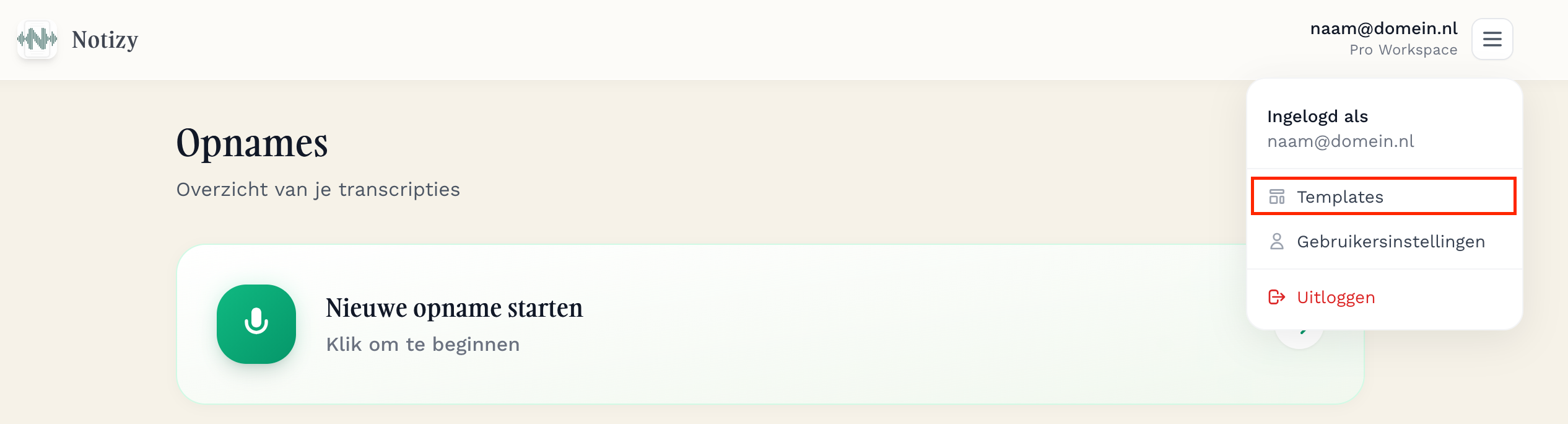 Templates kan je aanmaken via web.notizy.nl.