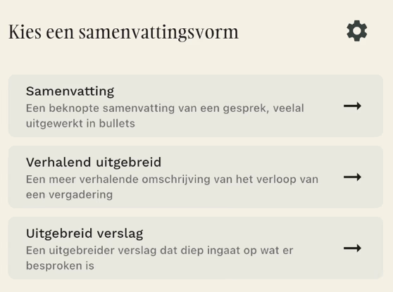 Notizy-AI maakt op basis van je keuze automatisch het juiste verslag.