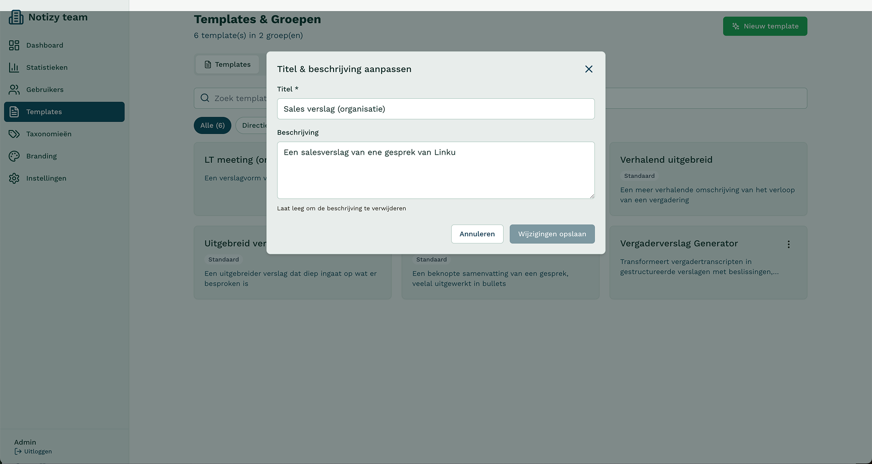 Soms voldoet de automatisch gegenereerde titel of beschrijving niet meer, of wil je een template simpelweg verduidelijken.