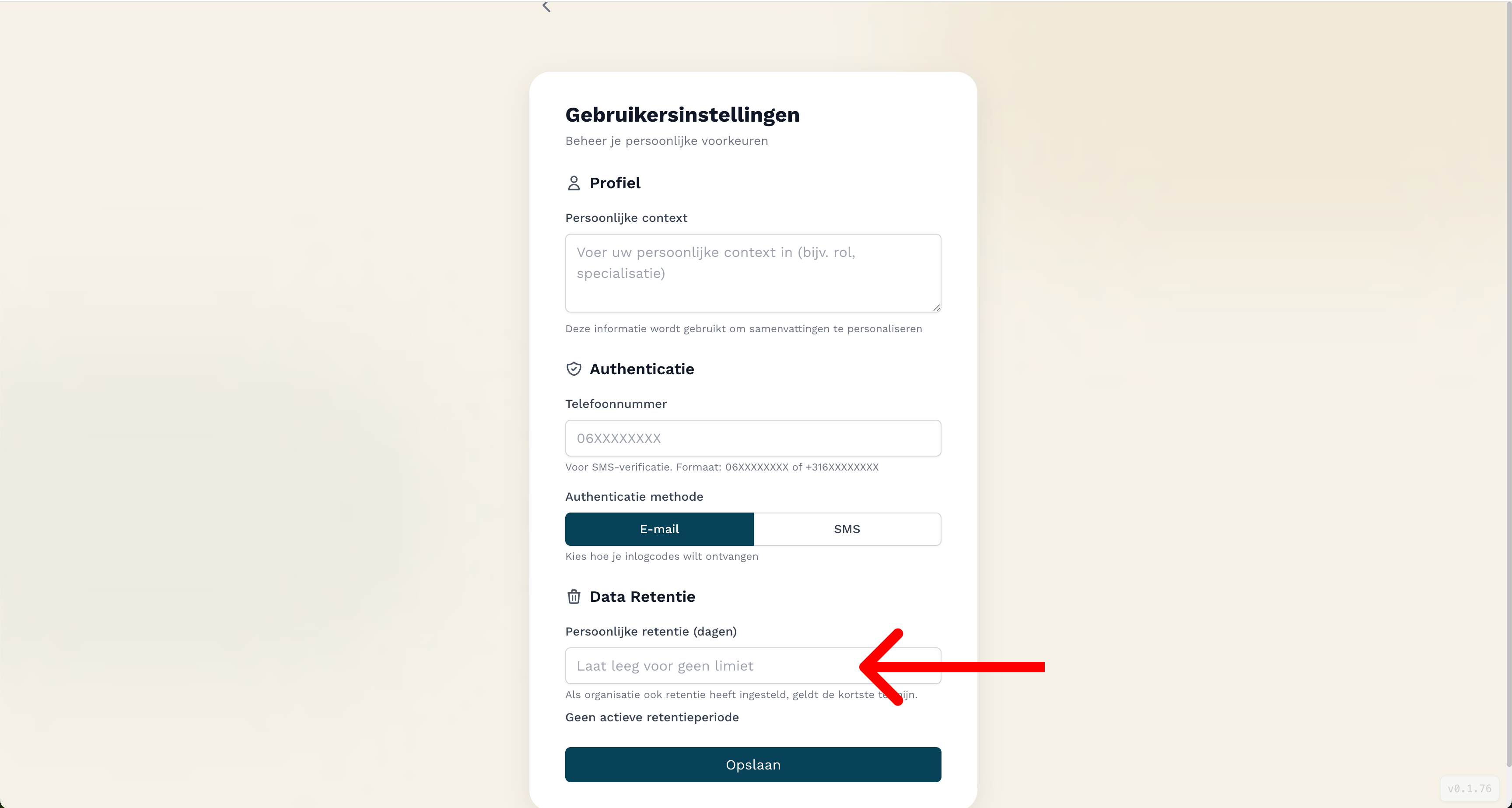 De retentieperiode invullen In het veld Persoonlijke retentie (dagen) kun je het gewenste aantal dagen invoeren dat je data bewaard moet blijven.