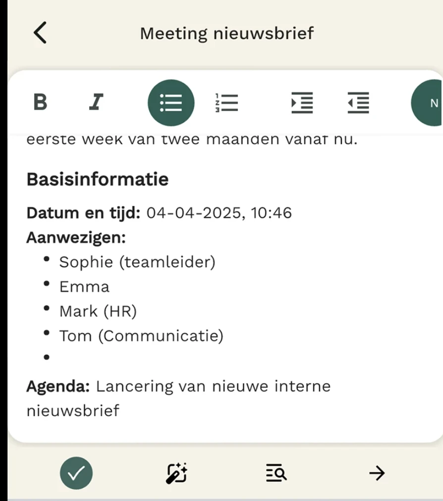Notizy-AI doet wat je vraagt en past het verslag automatisch aan.